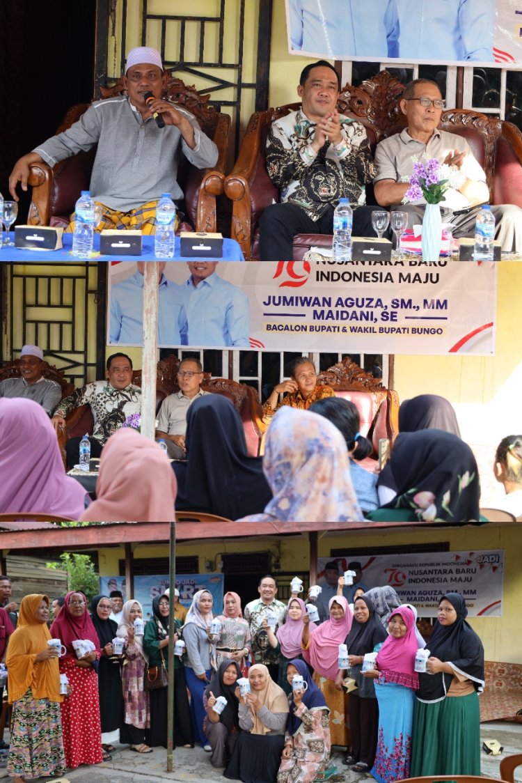 “Jika saya diizinkan Allah, jika menjadi Bupati nanti, saya pastikan tidak ada lagi masyarakat yang mengeluarkan uang untuk berobat dan menyekolahkan anaknya dari SD hingga SMP,” ungkap Jumiwan Aguza.