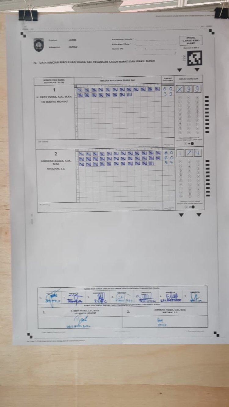 Sedangkan pasangan nomor urut 2 Jumiwan - Maidani memperoleh sebanyak 174 suara. (Rdk)