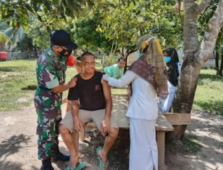 Seperti dilakukan Babinsa Koramil 02/Tanah Tumbuh, Pelda Bahman yang terus mendampingi petugas Dinas Kesehatan untuk melaksanakan vaksinasi yang dilakukan secara door to door di Desa Pelayang, Kecamatan Bathin II Pelayang, Kabupaten Bungo-Jambi, Senin (22/11) kemarin.