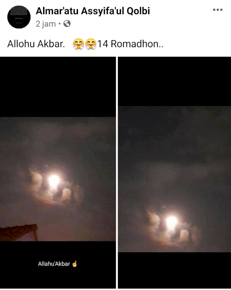 Awan berbentuk lafaz Allah tersebut tepat berada di bawah bulan yang memancarkan sinarnya secara menyeluruh di malam ke 15 bulan ramadan.
