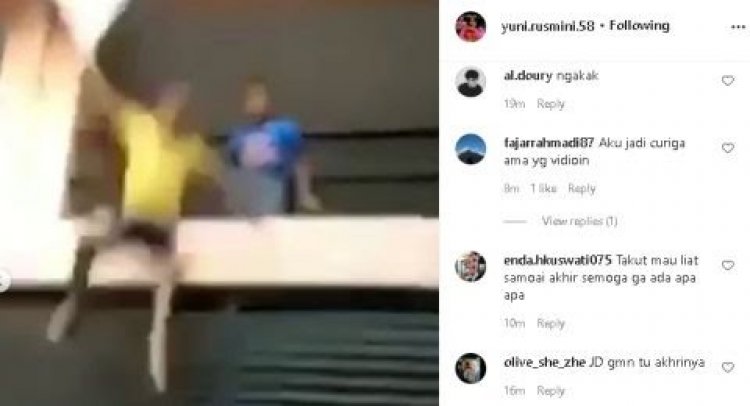 Sejak tadi pagi viral di media sosial video bocah berkaos kuning terjun dari lantai dua sebuah gedung memakai parasut kresek. Yang terjadi berikutnya, si bocah terdengar menangis dan mengaduh setelah jatuh.