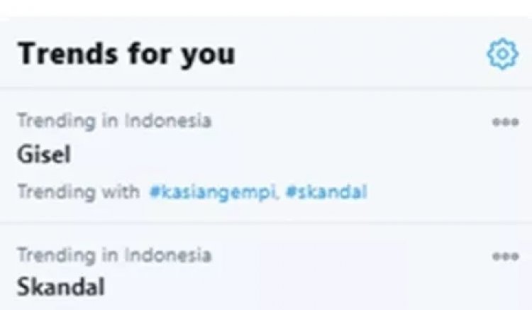 Nama Gisel menduduki puncak trending bersama dengan beberapa tagar lainnya seperti #TharnTypeSS2EP1, kata Bagi, #OurDreamTHE8day dan liannya.