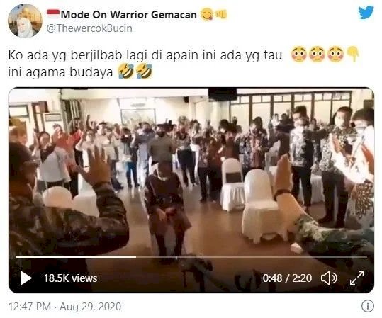 "Kok ada yang berjilbab lagi diapain ini ada yang tahu? Ini agama budaya," tulis akun itu seperti dikutip Suara.com, Minggu (30/8/2020).