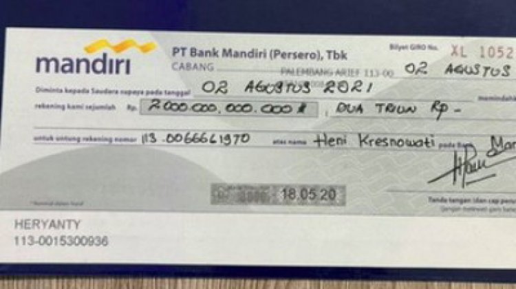 Lagi-lagi media sosial dibikin heboh beredarnya foto bilyet giro Rp 2 triliun yang disebut-sebut sebagai uang sumbangan dari Heriyanti, anak pengusaha mendiang Akidi Tio yang sebelumnya ramai diberitakan menyumbang dana fantastis untuk penanganan Covid-19 di Sumatera Selatan (Sumsel). Di dalam bilyet giro tersebut tertera nomor rekening penerima atas nama Heni Kresnowati dan banknya adalah PT Bank Mandiri (Persero) Tbk (BMRI), satu dari empat bank BUMN papan atas di Tanah Air.