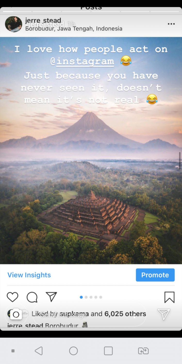 "Saya suka melihat reaksi orang-orang di @instagram, hanya karena kamu belum pernah melihatnya, bukan berarti kalau itu tidak nyata," tulis @jerre_stead di story berlatar foto miliknya yang di-repost @indtravel.