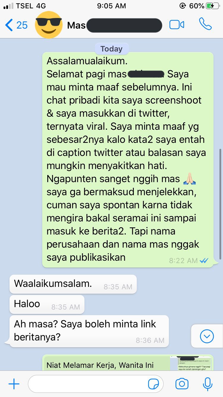 Tangkapan layar percakapan antara Ifa dan pemilik perusahaan.