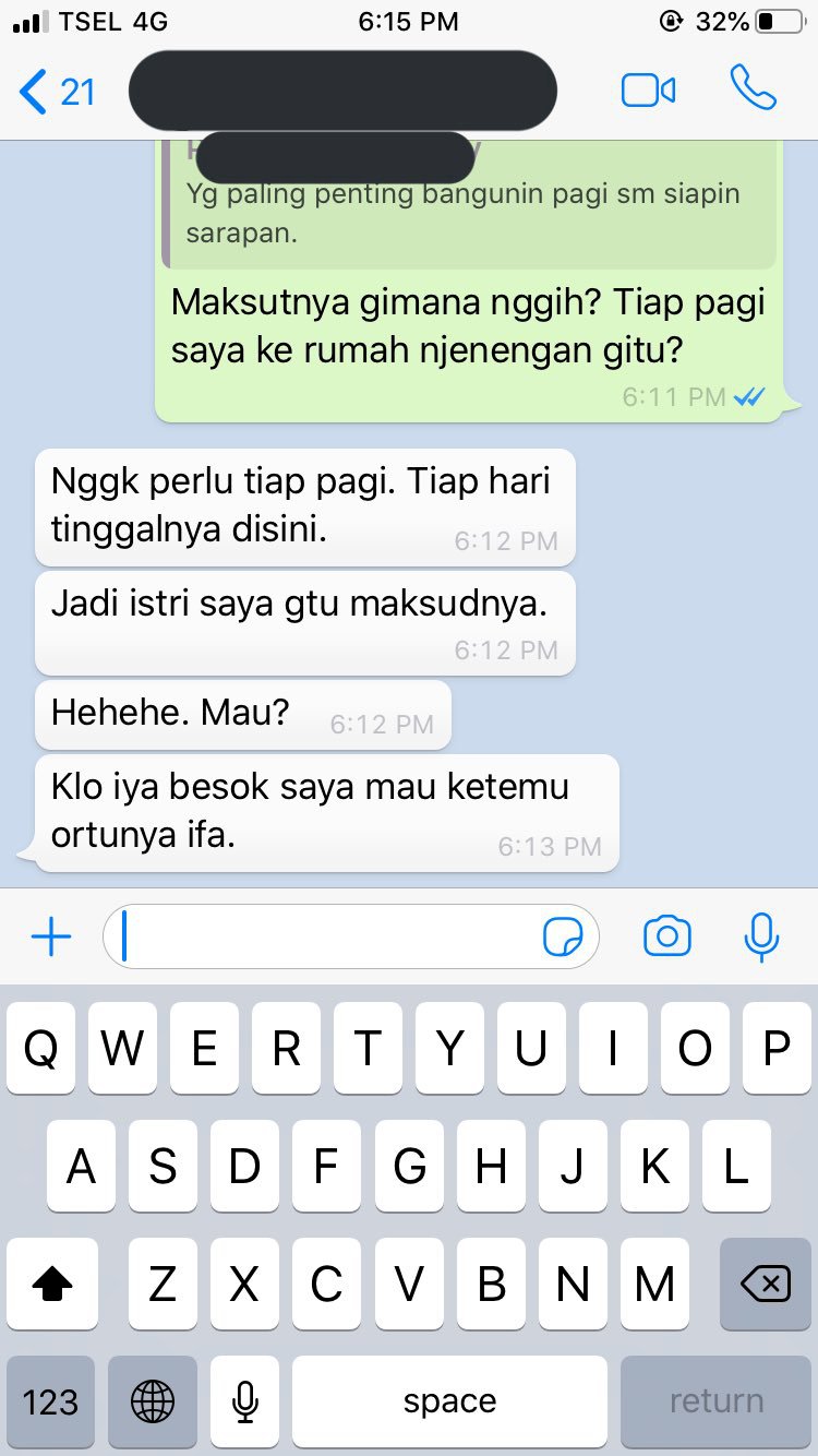 "Maksudnya gimana nggih (ya,red)? Tiap pagi saya ke rumah njenengan (Anda, red) gitu?" tanya Ifa kebingungan,