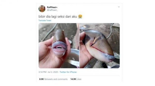 Meski cuitan tersebut singkat, tetapi foto ikan punya bibir dan mulut seperti manusia ini berhasil menyita perhatian warganet lainnya. Hal ini terbukti dengan 14.000 lebih yang menyukai postingan itu.