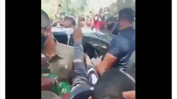 Dalam video singkat itu, tampak mobil yang ditumpangi Jokowi dikerubungi warga.