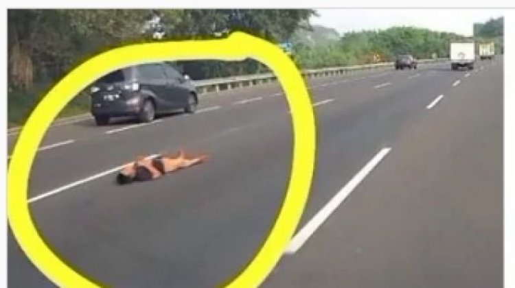 Viral Sosok Berbaring di Jalan Tol, Pemobil: Astagfirullahaladzim!