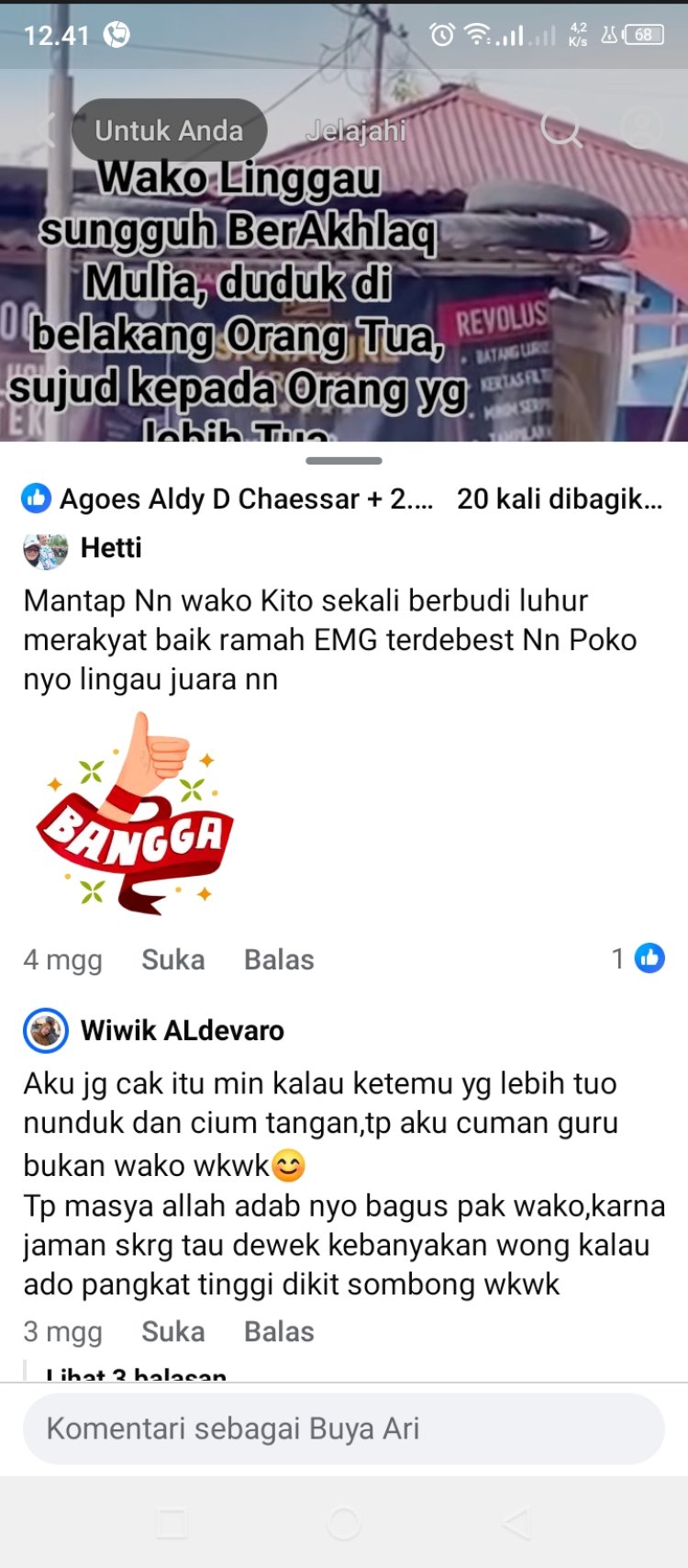 Komentar senada juga datang dari warganet lain. “Masya Allah, adabnya bagus Pak Wako. Karena zaman sekarang kebanyakan orang kalau ada pangkat tinggi sedikit saja, langsung sombong,” tulis akun Wiwik ALdevaro.