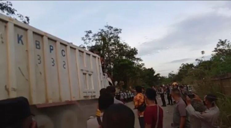 Pemblokiran jalan tambang batubara yang dilakukan oleh masyarakat lima dusun dalam Kecamatan Muko-Muko Bathin VII, Kabupaten Bungo-Jambi berujung bentrok dengan masa pekerja PT KBPC, Kamis sore (1/4/2021).
