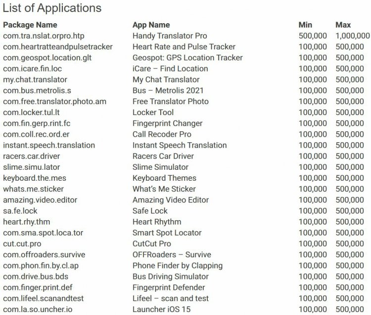 Daftar lengkap 200 aplikasi yang terinfeksi malware GriftHorse dapat dilihat di blog Zimperium di sini. Berikut ini beberapa aplikasi nakal pembawa malware GriftHorse yang sudah diunduh lebih dari 100.000 kali. Kalau menemukan salah satu aplikasi ini di ponsel kalian, segera hapus ya guys.
