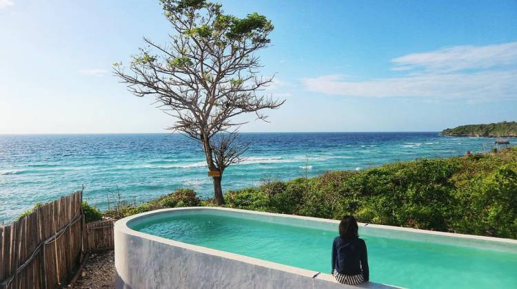 Mengutip unggahan Instagram Marischka Prudence, seorang travel blogger ternama Indonesia, bangunan putih biru di tempat tersebut terlihat tertata rapi dan bertingkat, serta dilengkapi beberapa anak tangga untuk menuju kamar penginapan.