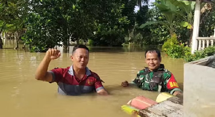 Hingga pukul 09.55 WIB pagi ini, banjir masih terjadi dengan ketinggian 50 Cm hingga 1,5 M di sejumlah wilayah. Seperti di Sungai Pinang (belakang Inul Vizta) banjir masih terjadi oleh warga. Babinsa Mulyadi dan anggota Polisi Bungo Ikhwan Aris menerjang banjir membagikan sembako ke warga.