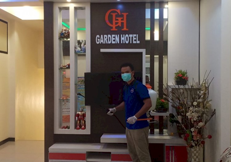 Penyemprotan Disinfektan di Hotel (Arfandi S/BRITO.ID)