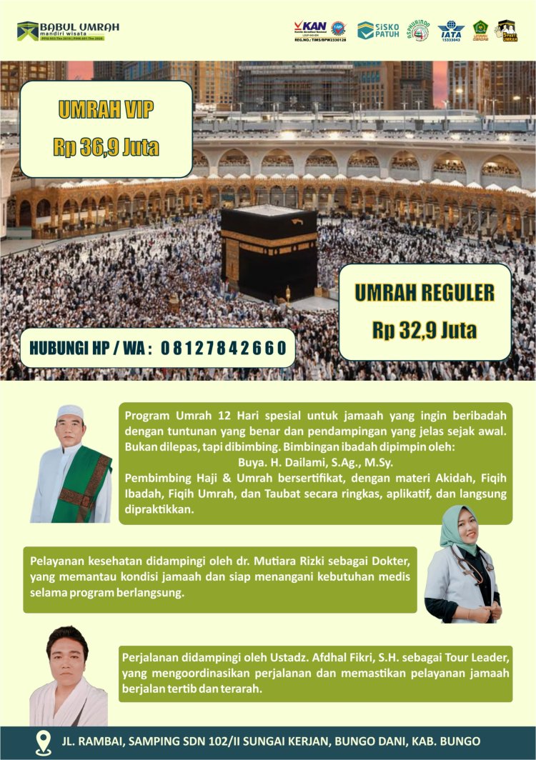 Dengan konsep pelayanan terpadu ini, H. Dailami berharap program umrah yang ditawarkannya mampu menjadi solusi bagi masyarakat yang ingin beribadah dengan tenang, terarah, dan penuh makna.