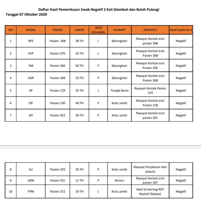 Berikut identitas pasien sembuh: