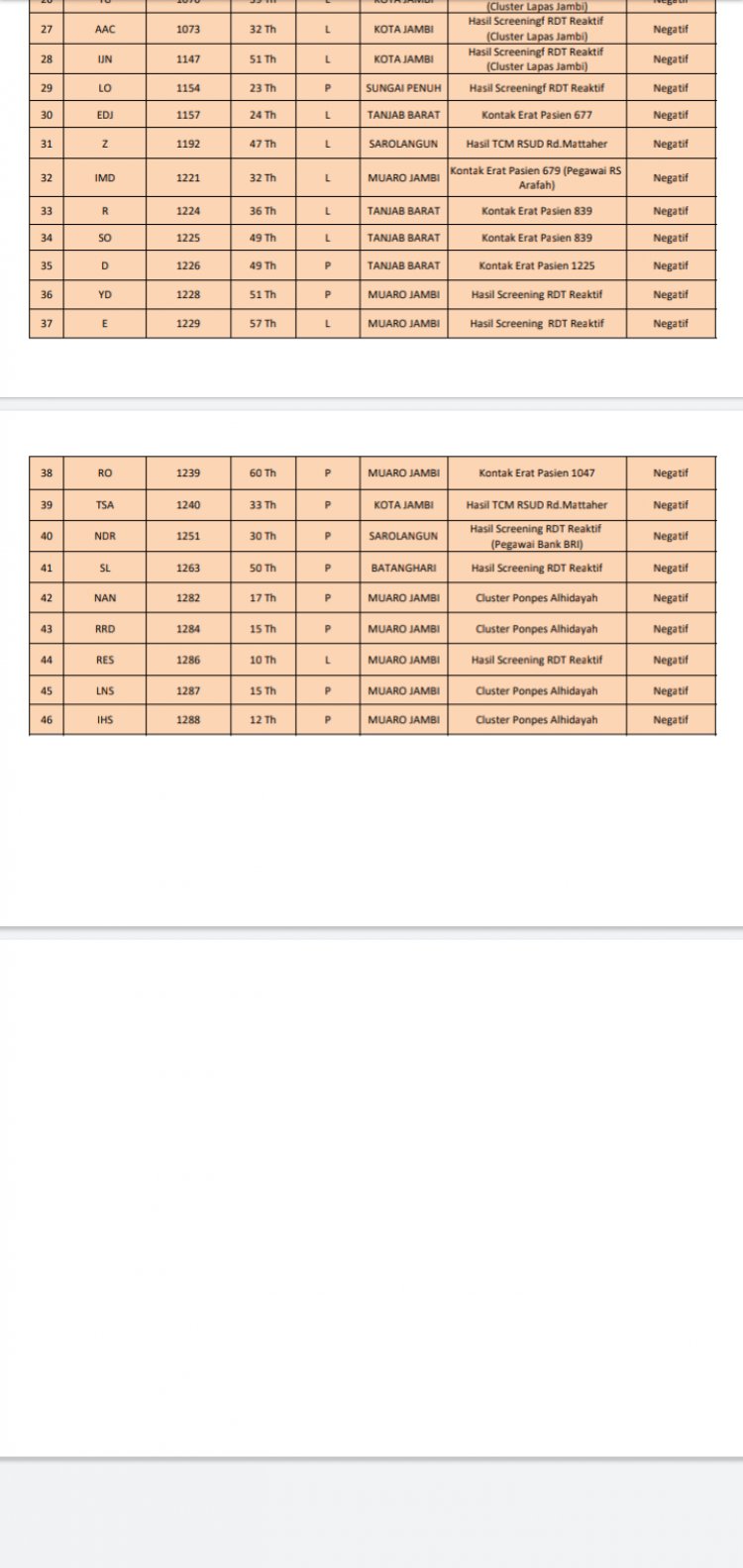 Jubir Satgas Penanganan Covid-19 Provinsi Jambi Johansyah mengatakan jumlah tertinggi dari Batanghari ada 13 orang terkonfirmasi. Kemudian disusul Tanjabbar 5 orang, selanjutnya Merangin 3 orang serta Kerinci 3 orang.