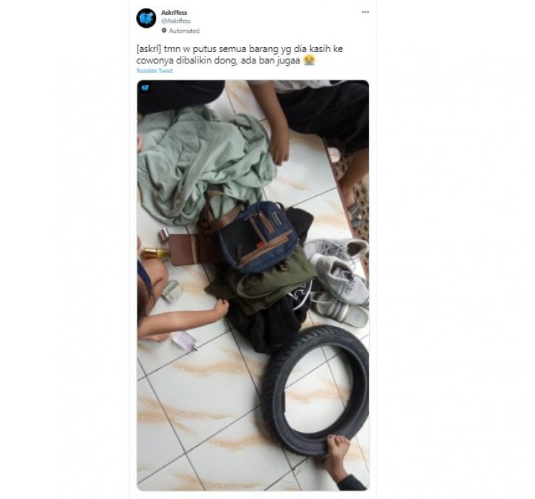Heboh pria ini balikin seluruh barang yang diperoleh, dari hal paling sepele hingga tak terduga. Hal itu diunggah oleh seorang pengirim atau sender secara anonim melalui akun @Askrlfess di jejaring media sosial Twitter pada Minggu (27/03/2022). Menurut keterangan, teman prianya baru -baru ini memutuskan hubungannya dengan sang kekasih.
