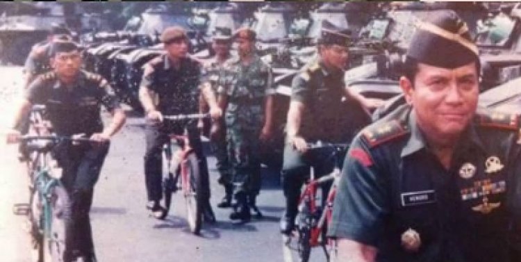 "Foto bawah: Mayjen TNI AM Hendropriyono, Kolonel Endriartono Sutarto, Mayor Moeldoko #GoodOldTimes," tutupnya.