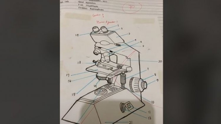 Dalam video yang diunggah oleh sebuah akun TikTok, mahasiswa tersebut memperlihatkan tugas menggambar mikroskop yang diberikan oleh dosen.