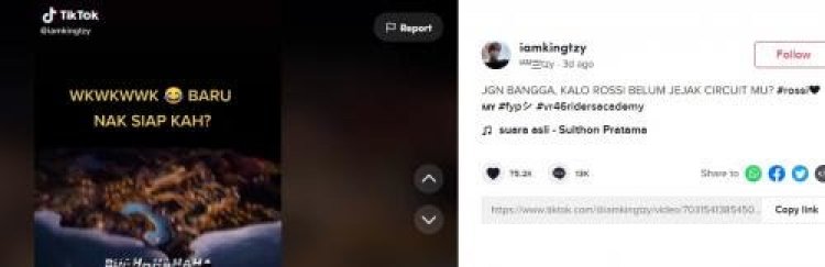 Melalui laman TikTok @iamtzy, netizen Malaysia ini meminta masyarakat Indonesia tak perlu berbangga dengan Sirkuit Mandalika, jika sirkuit itu belum pernah digunakan Valentino Rossi balapan.