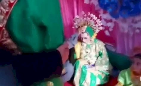 Beredar sebuah video memperlihatkan dua mempelai yang sedang melangsungkan acara pernikahan. Namun, tiba-tiba rumah tempat berlangsungnya acara tersebut roboh.